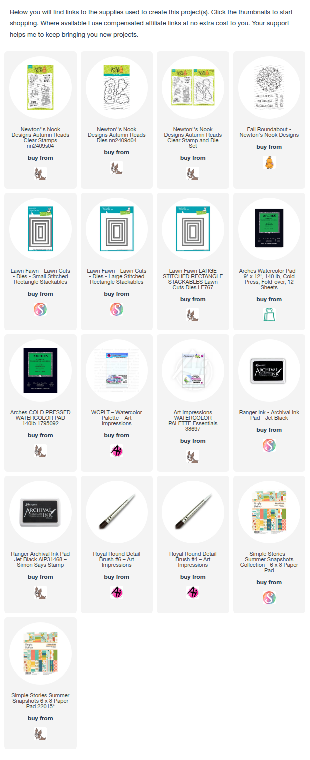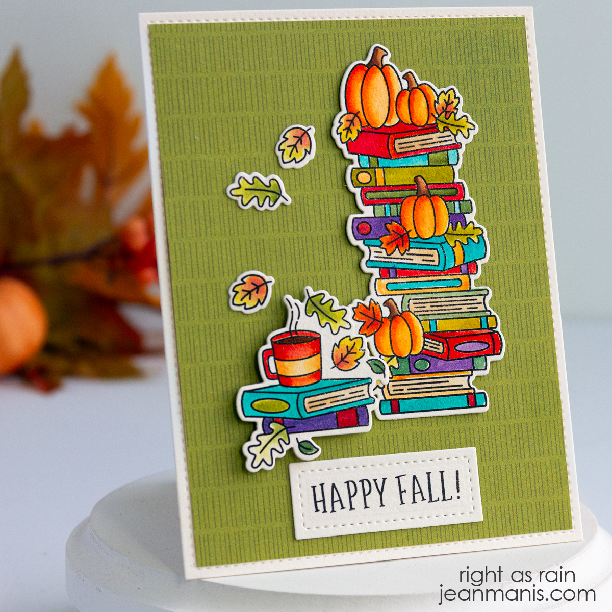 Hello! There’s nothing like settling in with a good book and a warm cup of coffee on a crisp autumn day, which is the feeling I wanted to capture with today’s card. I used the Newton’s Nook Autumn Reads stamp set to create stacks of books accented with pumpkins and one topped with a steaming mug. The images are stamped and watercolored in rich fall hues, and the simple sentiment, “Happy Fall,” ties it all together with seasonal charm.