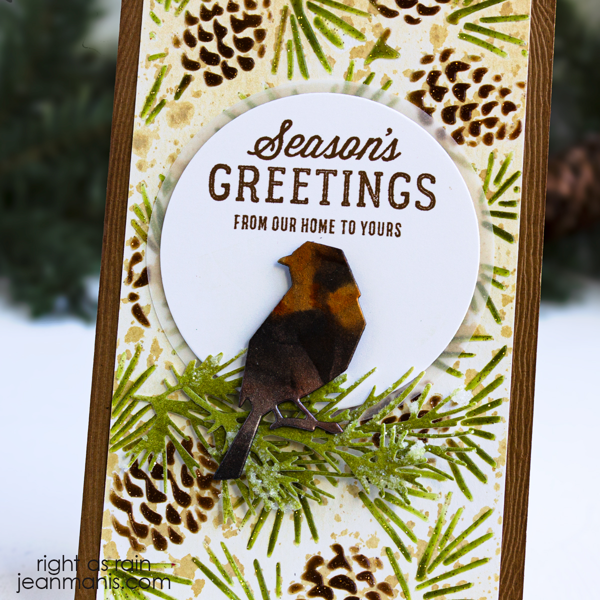 It’s a bit more involved than my usual clean and simple cards, but worth every step for the texture and sparkle it brings to the finished design.