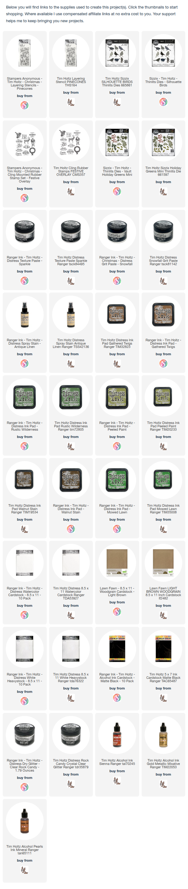 - Next, create a monoprint on watercolor paper with the Pinecones stencil using Antique Linen Distress Spray and water. There are several of the Tim Holtz makers who regularly use this technique. Once dry, stencil in the pinecones and greenery. Apply the Sparkle paste through the panel and set aside to dry. Tim Holtz recently created a video discussing the many pastes available.; it proved to be an invaluable resource.