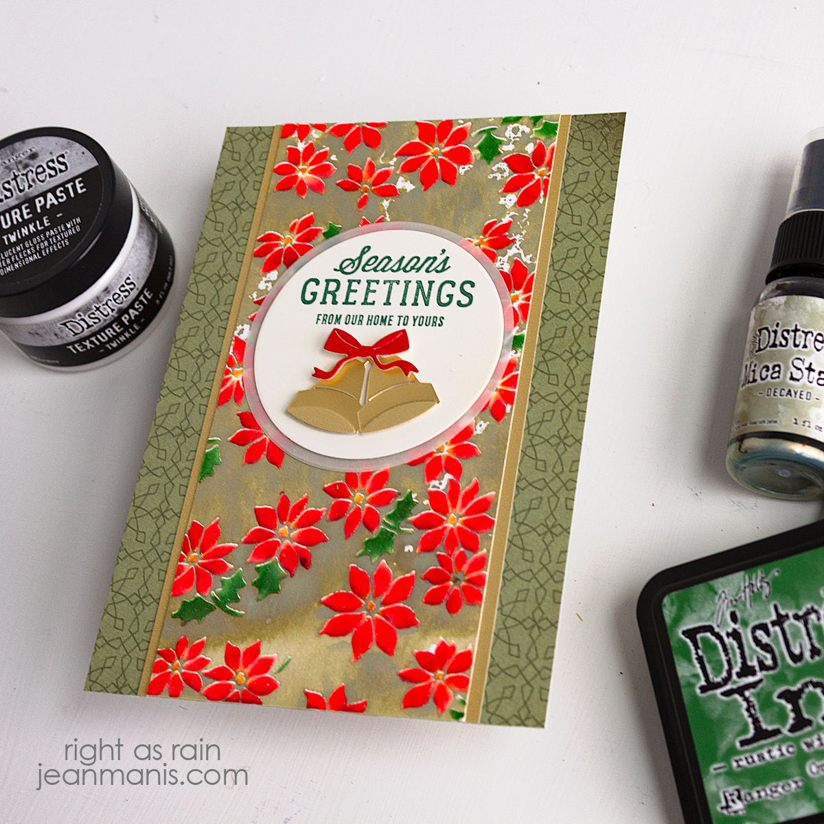• Create a monoprint with the Tiny Poinsettia stencil using Decayed Mica Stain. I shared another stencil monoprint card HERE.