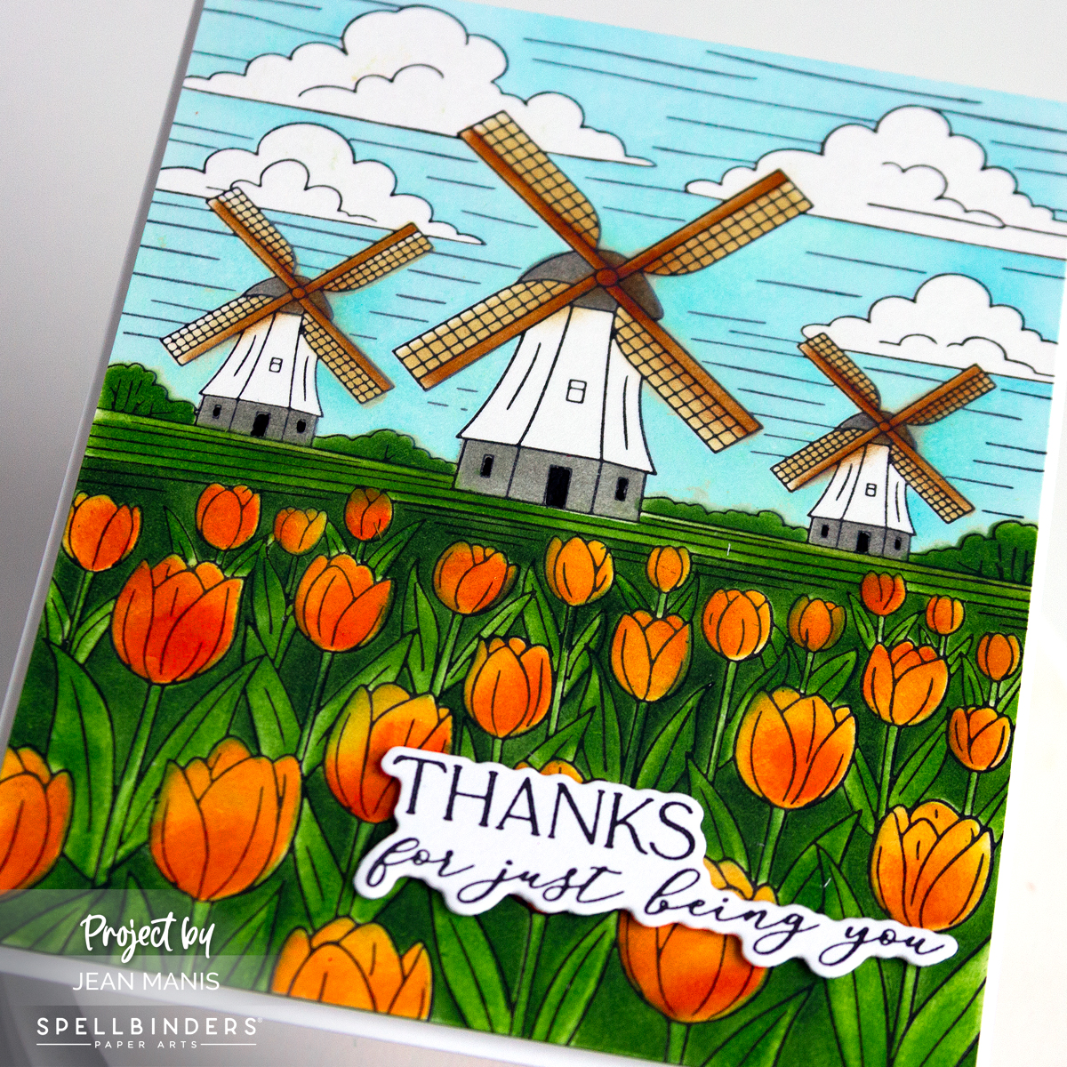 Hello! For this spring card, I used a Spellbinders BetterPress tulip plate with its coordinating stencils, part of the Yana’s Tulips Collection. The BetterPress background makes coloring the scene simple and the Distress Oxide inks through the stencils gives the scene the look of a painted landscape. A BetterPress sentiment ties everything together.