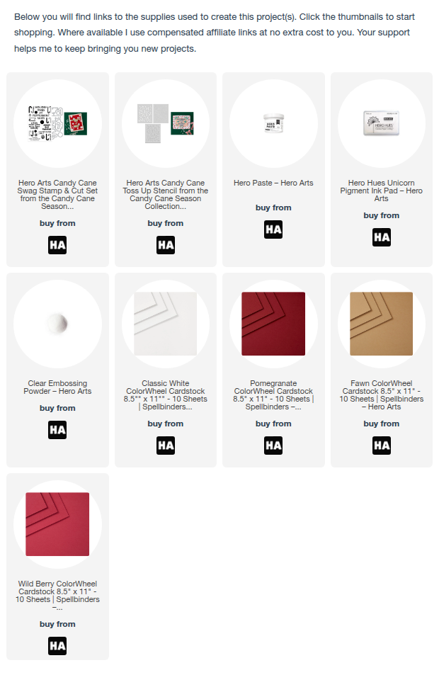 Hello! I’m sharing two holiday cards created with the new Candy Cane Collection from Hero Arts. This festive collection includes stamp sets with coordinating dies, a stand-alone sentiment die set, and a versatile layering stencil. I used two different approaches with the stencil set—one uses white embossing paste on red cardstock for a bold, dimensional look, and the other layers white and red ink to build a classic candy cane pattern. Both cards feature the cheerful sentiment “Holiday Vibes and Peppermint Skies,” bringing a fresh twist to holiday cardmaking.