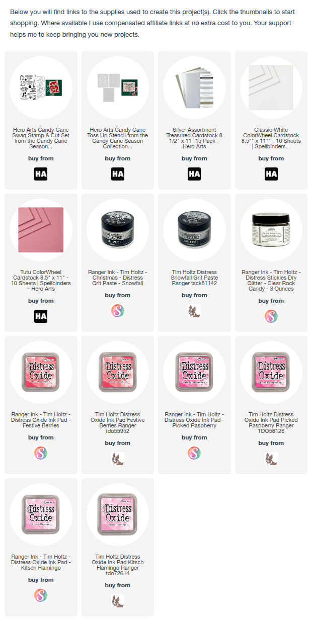 Hello! I’m back with another holiday card featuring the new Candy Cane Collection from Hero Arts. This time, I used Distress Oxide to ink the solid candy cane shapes, then added snowfall paste through the striped stencil and sprinkled on dry glitter for extra holiday sparkle. It’s a fun and festive way to bring texture to a clean and simple card design. You can see my first designs with these products HERE.